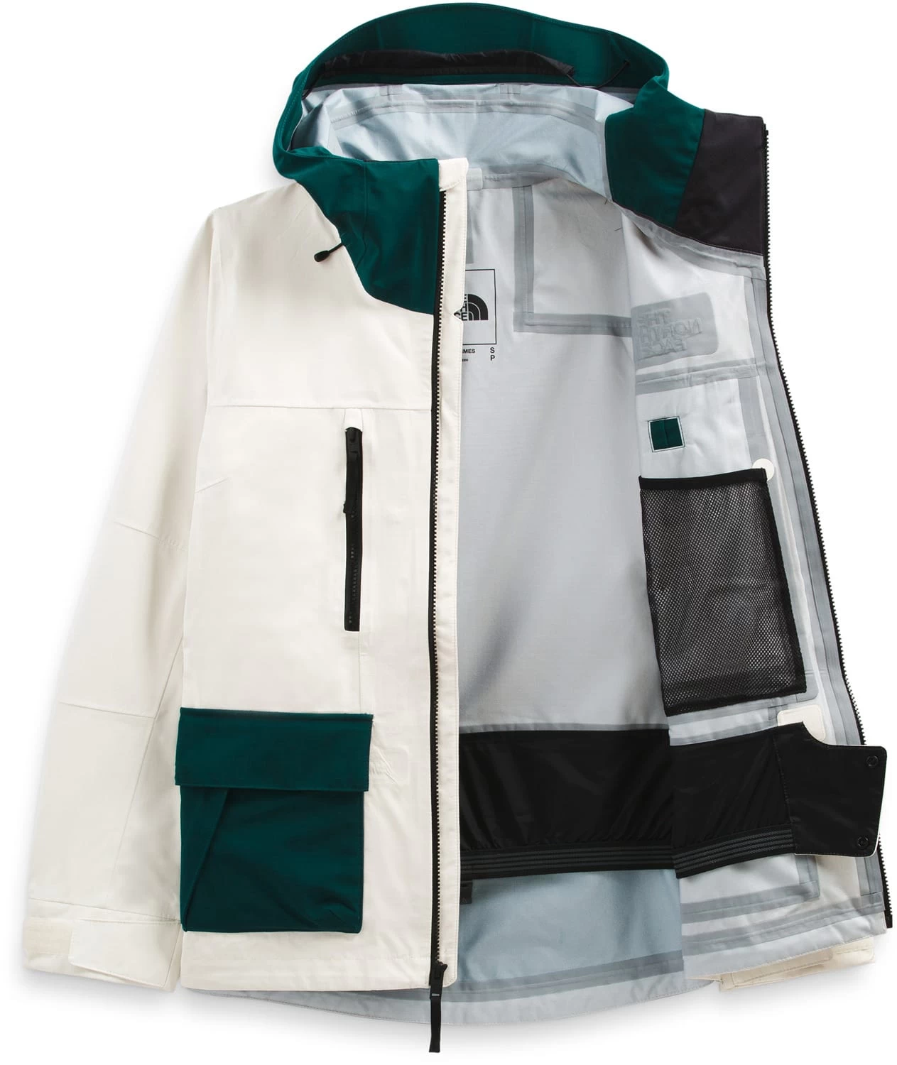 - Secure-zip pass pocket with a goggle wipe above left cuff